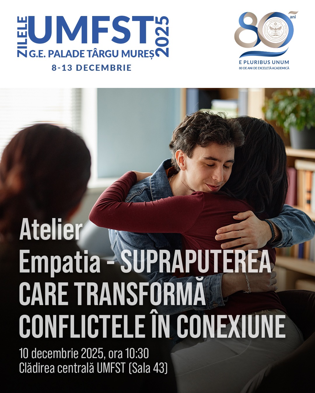 Liceul UMFST „George Emil Palade" organizează atelierul „Empatia - supraputerea care transformă conflictele în conexiune". Se mizează pe dezvoltarea abilităților emoționale și noncognitive.